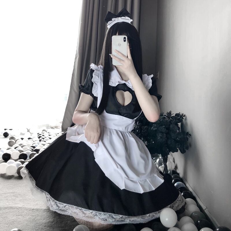 色:[帽子+黒のドレス+白のエプロン+Tパンツ]のスーツ,[帽子+黒のドレス+白のエプロン+Tパンツ]+同じストッキングのスーツ