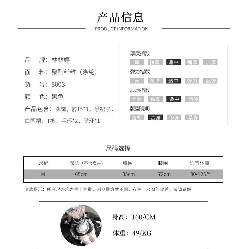 色:含む:帽子+ネックリング*1+黒と白のエプロン+Tパンツ+ハンドリング*2+レッグリング*1,帽子+ネックリング*1+黒と白のエプロン+Tパンツ+ブレスレット*2+レッグリング*1+白のストッキング,帽子+ネックリング*1+黒と白のエプロン+Tパンツ+ブレスレット*2+レッグリング*1+黒のストッキング