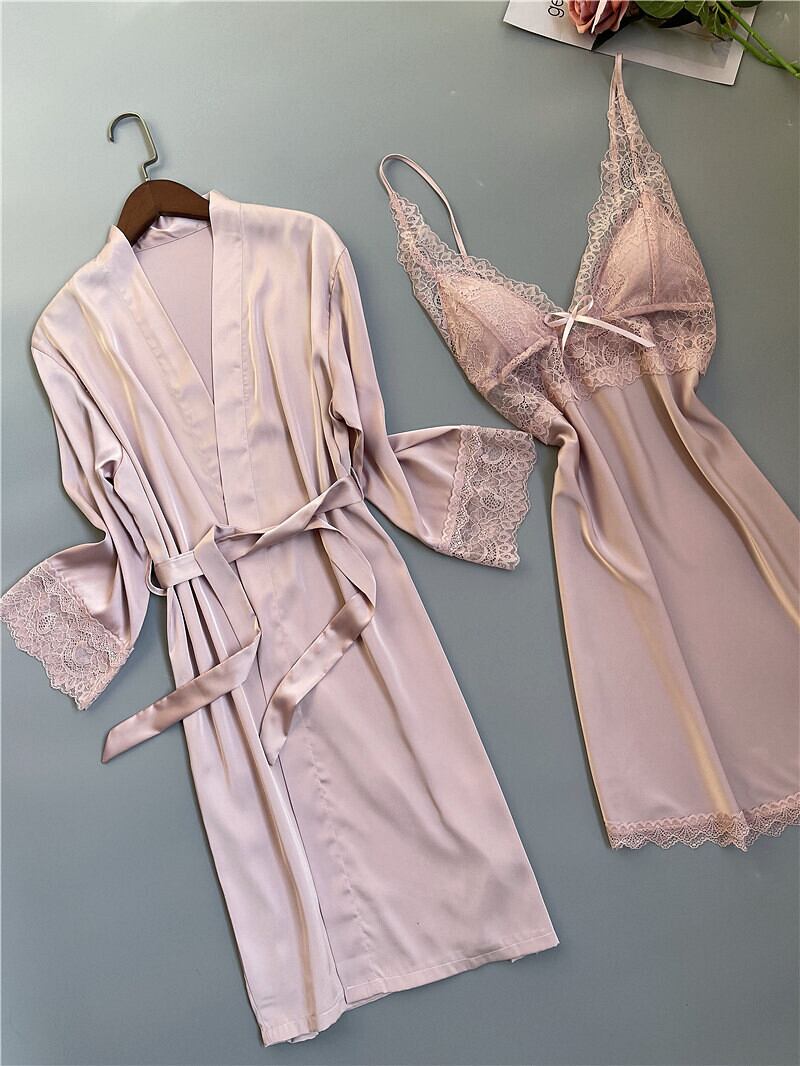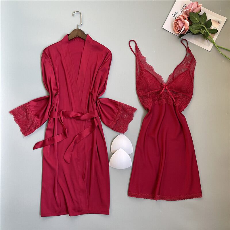 春と秋のパジャマフェミニンなアイスシルクバスローブレーススリング胸パッド誘惑ナイトドレスネグリジェツーピースホームサービス夏 スプリング 春物 夏物 オータム 秋物 ワンピース ランジェリー セクシー ルームウェア81194379161 | Plug Shop