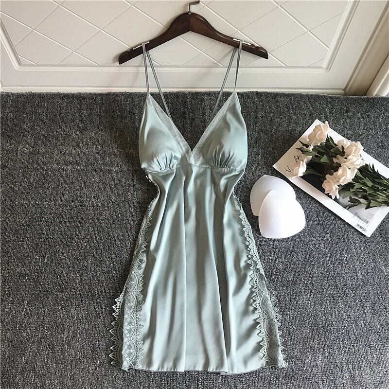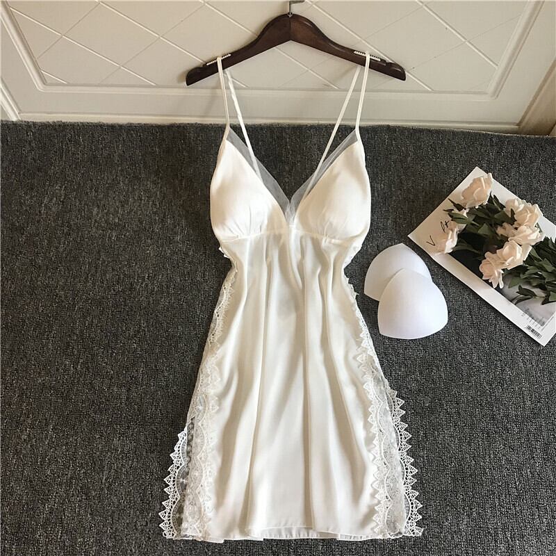 透明スリングチェストパッド誘惑ネグリジェ女性夏ビングシルク色気美しいバックパジャマ春と秋のホームショートスカート薄い スプリング 春物 オータム 秋物 ワンピース ランジェリー セクシー ルームウェア52427924234 | Plug Shop