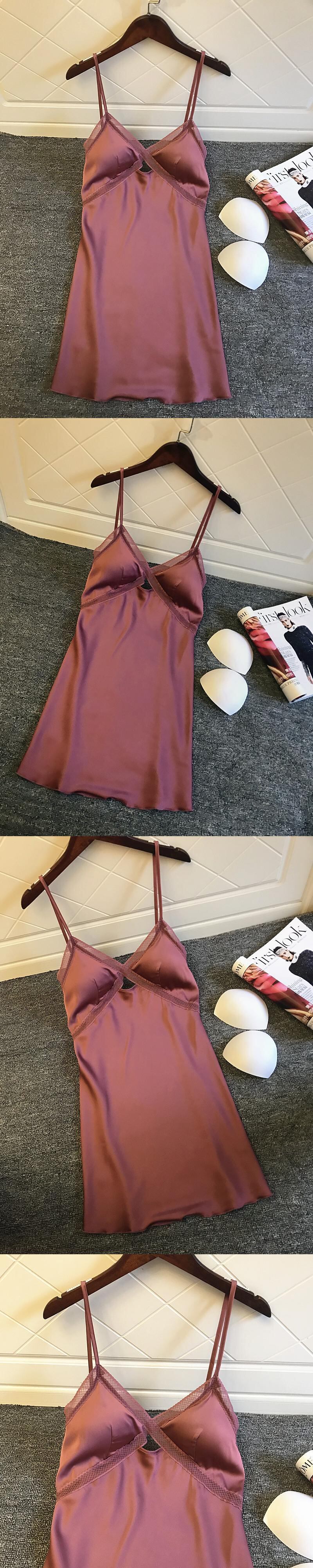 2021年の新しいセクシーなシルクのパジャマの女性と胸のパッドが集まったレースのサスペンダーナイトドレス真夜中の魅力の家 レッド ワンピース ランジェリー セクシー ルームウェア67990811298 | Plug Shop
