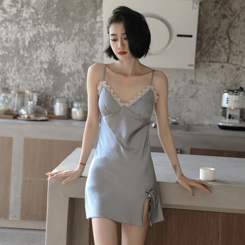 アイスシルクパジャマ女性の春と夏の新しいレースのサイドストラップセクシーなネグリジェ胸パッドホームサービスで韓国のシルクの誘惑 スプリング 春物 夏物 韓国ファッション ワンピース ランジェリー セクシー ルームウェア52493561829 | Plug Shop