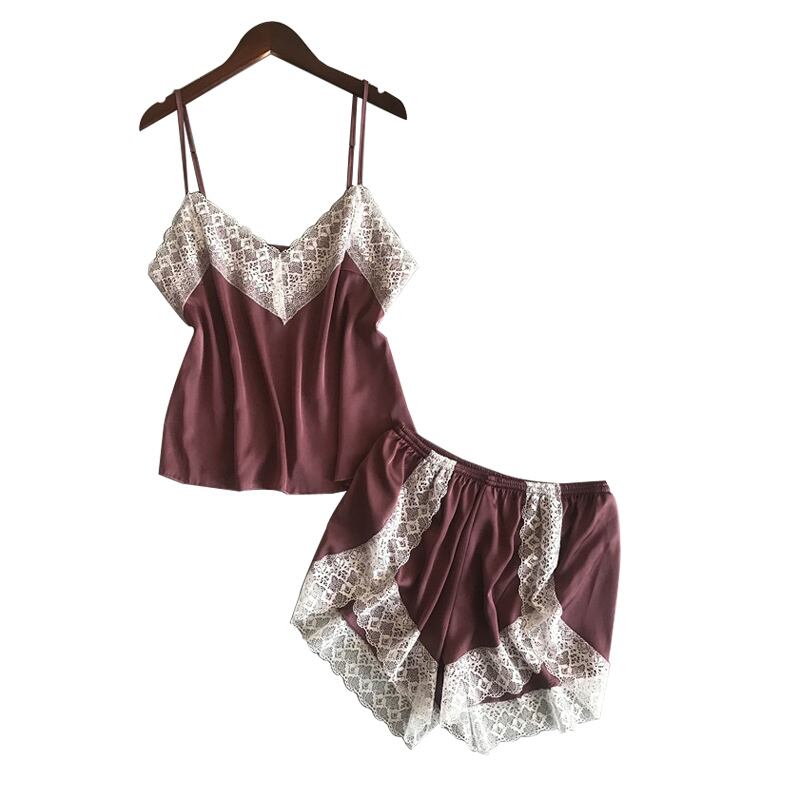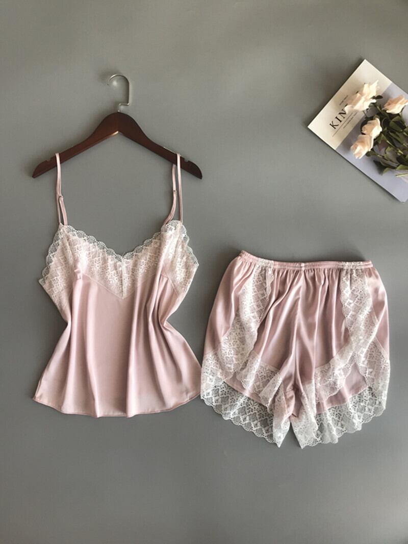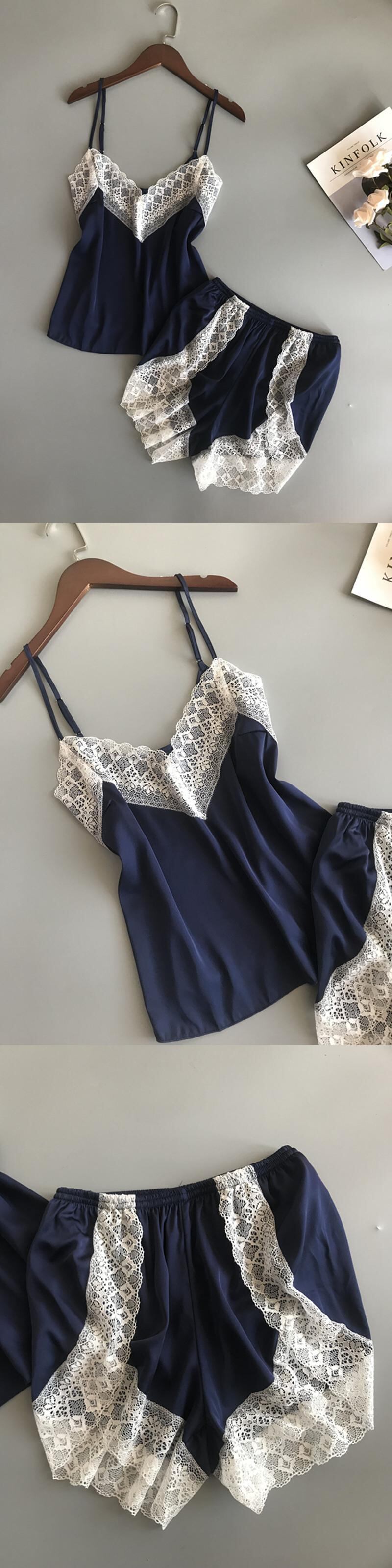 春秋アイスシルクパジャマ女性夏セクシーレースシルクサスペンダーショーツツーピーススーツホームサービス スプリング 春物 夏物 オータム 秋物 ランジェリー セクシー ルームウェア7042711399 | Plug Shop