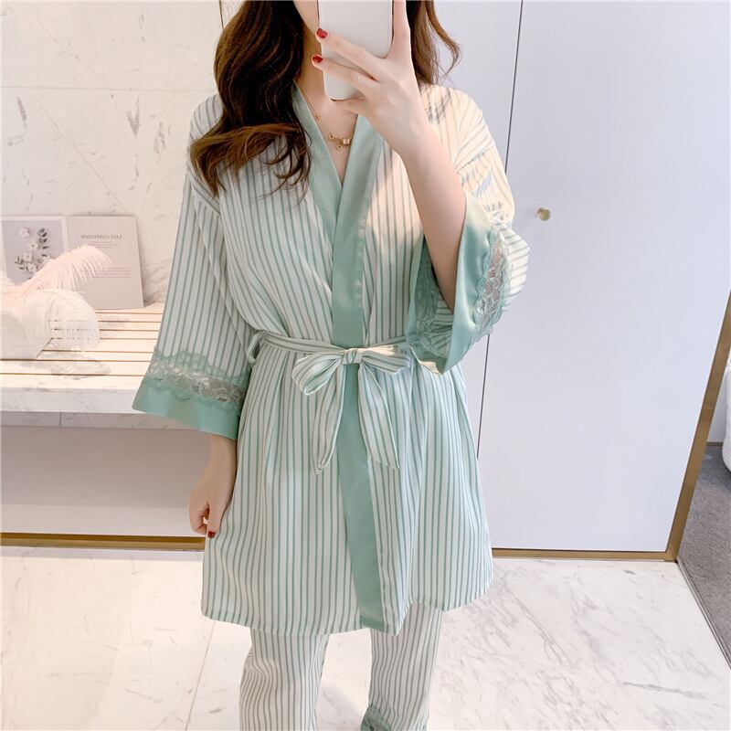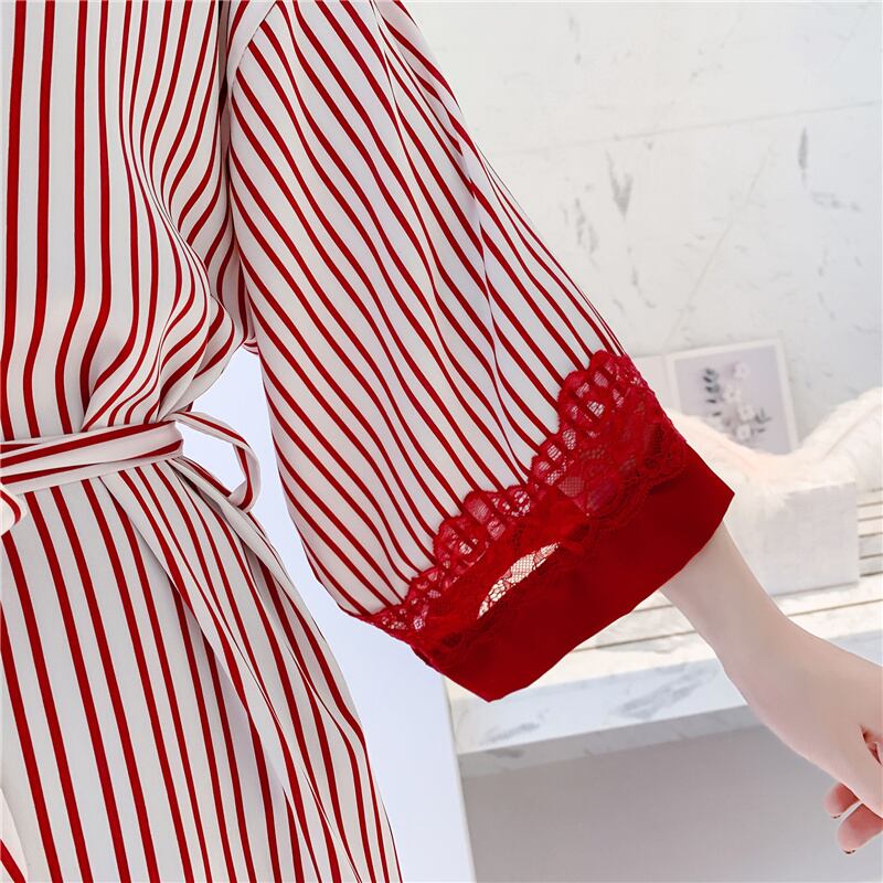 スリーピースパジャマ女性の春と秋のセクシーなストライプのスーツは、胸パッドナイトガウンサスペンダーズボンホームサービスで小さな胸を集めました レッド スプリング 春物 オータム 秋物 ランジェリー セクシー ルームウェア54110990168 | Plug Shop
