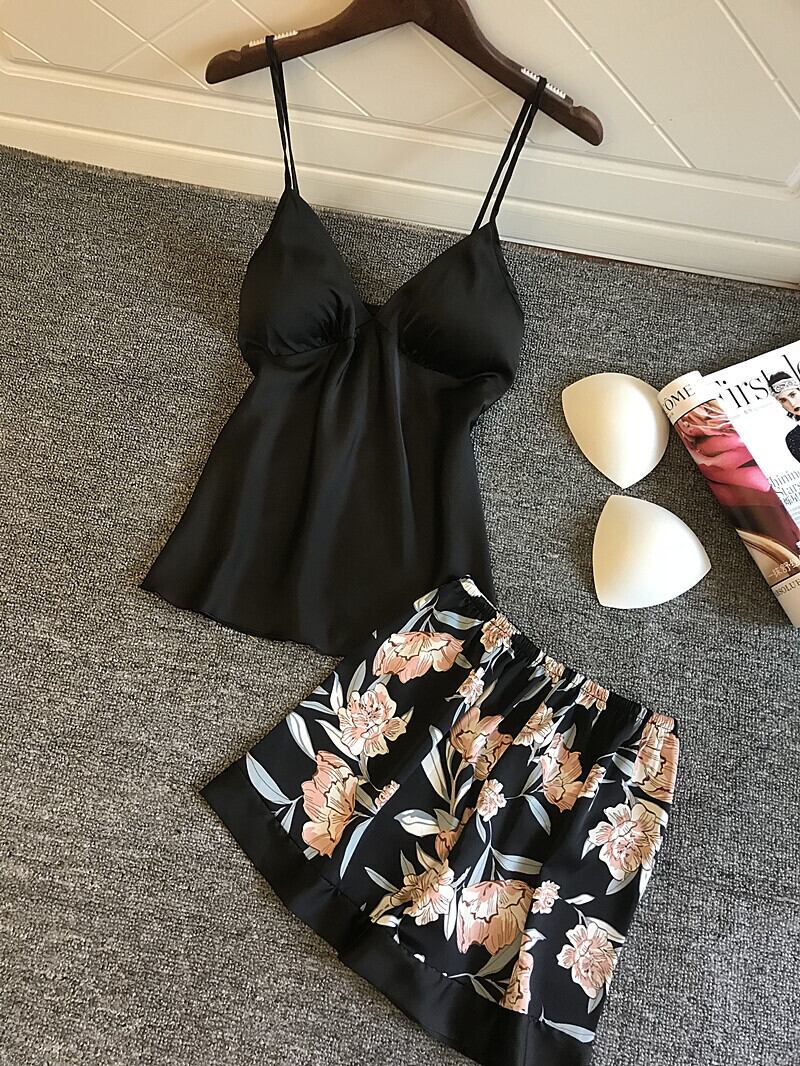 セクシーな誘惑パジャマレディースサマーベルトチェストパッドギャザーサスペンダーショーツツーピースアイスシルクプリントホームサービススーツ レッド 夏物 ハーネス ランジェリー セクシー ルームウェア75502879666 | Plug Shop