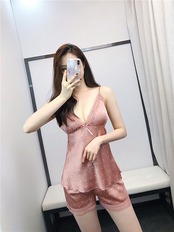 insセクシーシルクスモールチェストパジャマレディースサマーサスペンダーチェストパッドベストショーツツーピースホームサービスかわいい 大人ガーリー スウィート キュート カジュアル 夏物 NEW ランジェリー セクシー ルームウェア18215042363 | Plug Shop