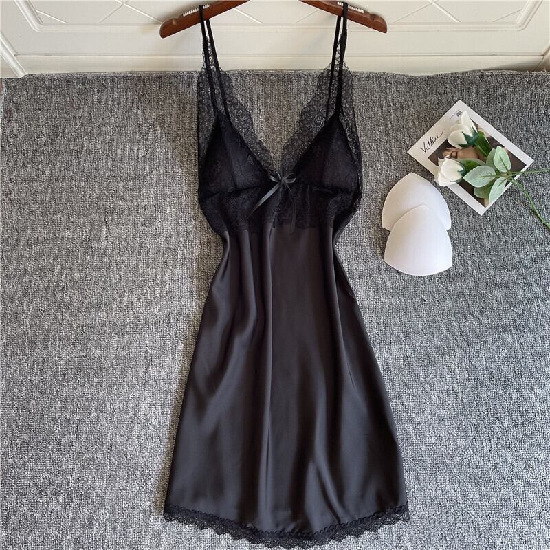 セクシーなアイスシルクホルターパジャマ女性の夏の中空スリング胸パッドショートスカート小さな胸が集まったレースの誘惑ホームナイトドレス レッド 夏物 ワンピース ランジェリー セクシー ルームウェア88866508280 | Plug Shop