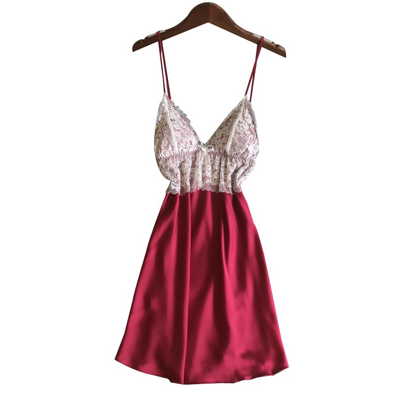 セクシーなレースのパジャマ女性夏のセクシーなサスペンダープライベートナイトスカートアイスシルク極端な誘惑胸パッドショートスカート薄い 夏物 ランジェリー セクシー ルームウェア97560949784 | Plug Shop