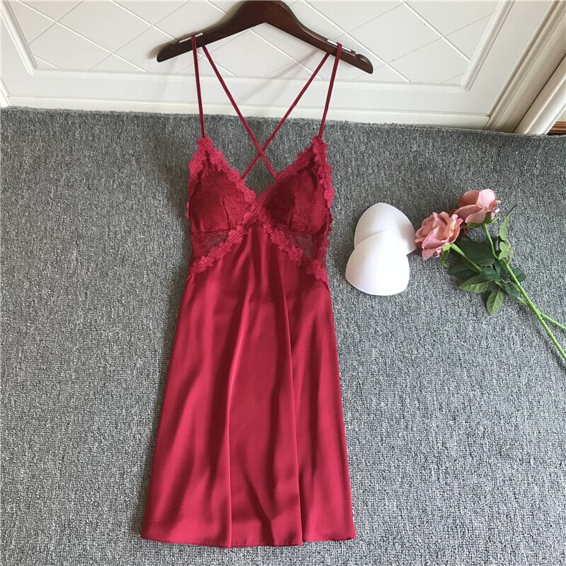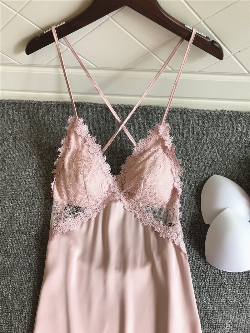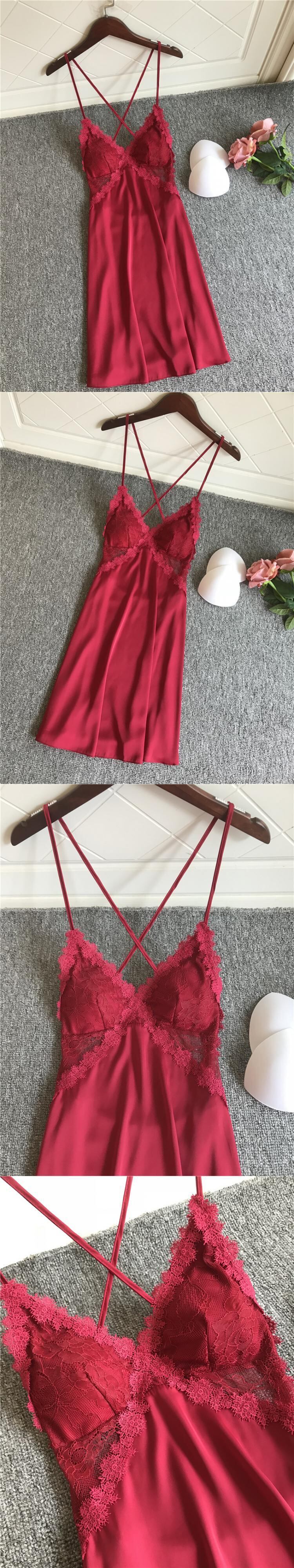 セクシーなパジャマの女性の春と夏のオープンバックレースの誘惑セクシーなネグリジェ白い中空スリングパジャマシミュレーションシルク ホワイト スプリング 春物 夏物 ワンピース ランジェリー セクシー ルームウェア94905846469 | Plug Shop