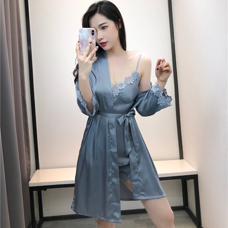 長袖パジャマ女性の韓国版春と秋のセクシーなアイスシルクスリングチェストパッドショーツナイトガウンスリーピーススモールチェストホームサービス夏 ロング スプリング 春物 夏物 オータム 秋物 韓国ファッション スタイル ランジェリー セクシー ルームウェア22169470895 | Plug Shop