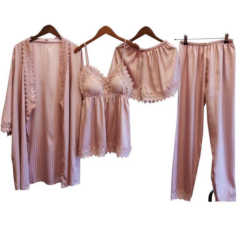 シルクパジャマ女性春夏レースサスペンダーチェストパッドズボンナイトガウン4ピース薄手長袖セクシーホームサービス秋冬 ロング スプリング 春物 夏物 オータム 秋物 ウィンター 冬物 ランジェリー セクシー ルームウェア69599589409 | Plug Shop
