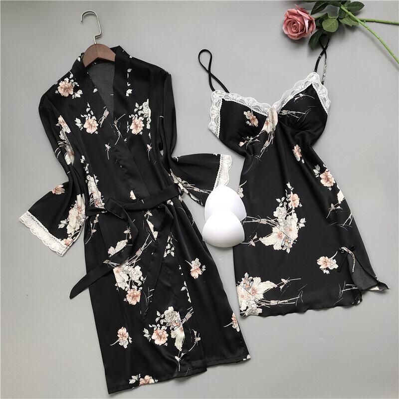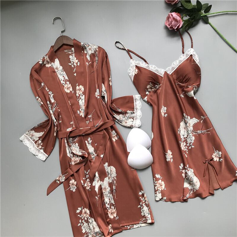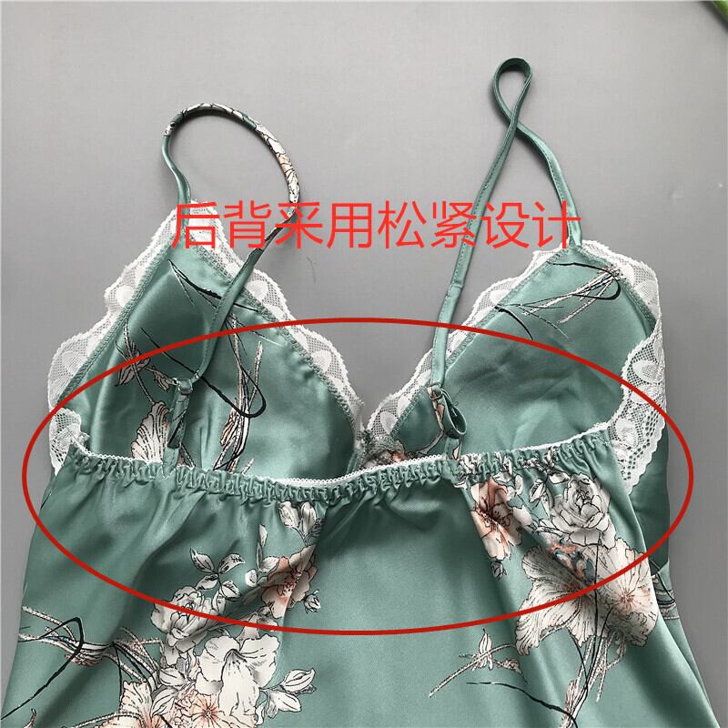 アイスシルクツーピースパジャマ女性の春と秋の薄いセクシーなスリング胸パッドナイトドレス長袖プリントナイトガウンホームサービス夏 ロング スプリング 春物 夏物 オータム 秋物 ワンピース ランジェリー セクシー ルームウェア44150893439 | Plug Shop