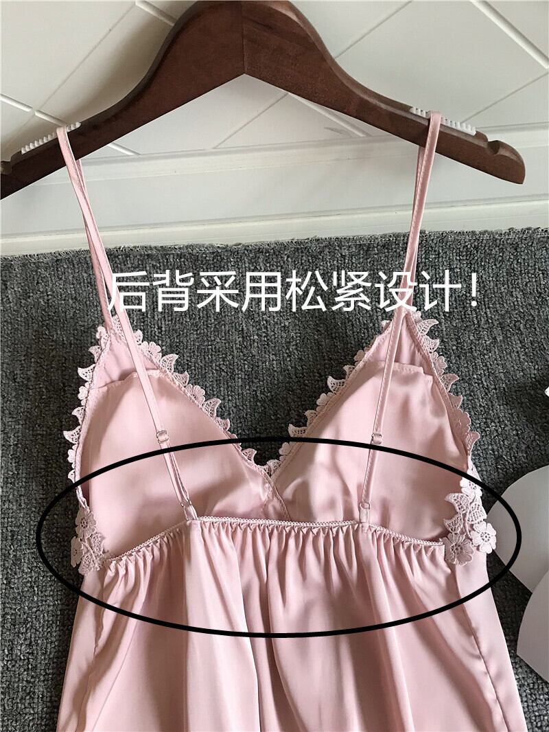 セクシーなパジャマ女性夏の薄いシルクオープンバックレース誘惑スリング胸パッドピンクの中空アイスシルクネグリジェ 夏物 ワンピース ランジェリー セクシー ルームウェア23972103772 | Plug Shop