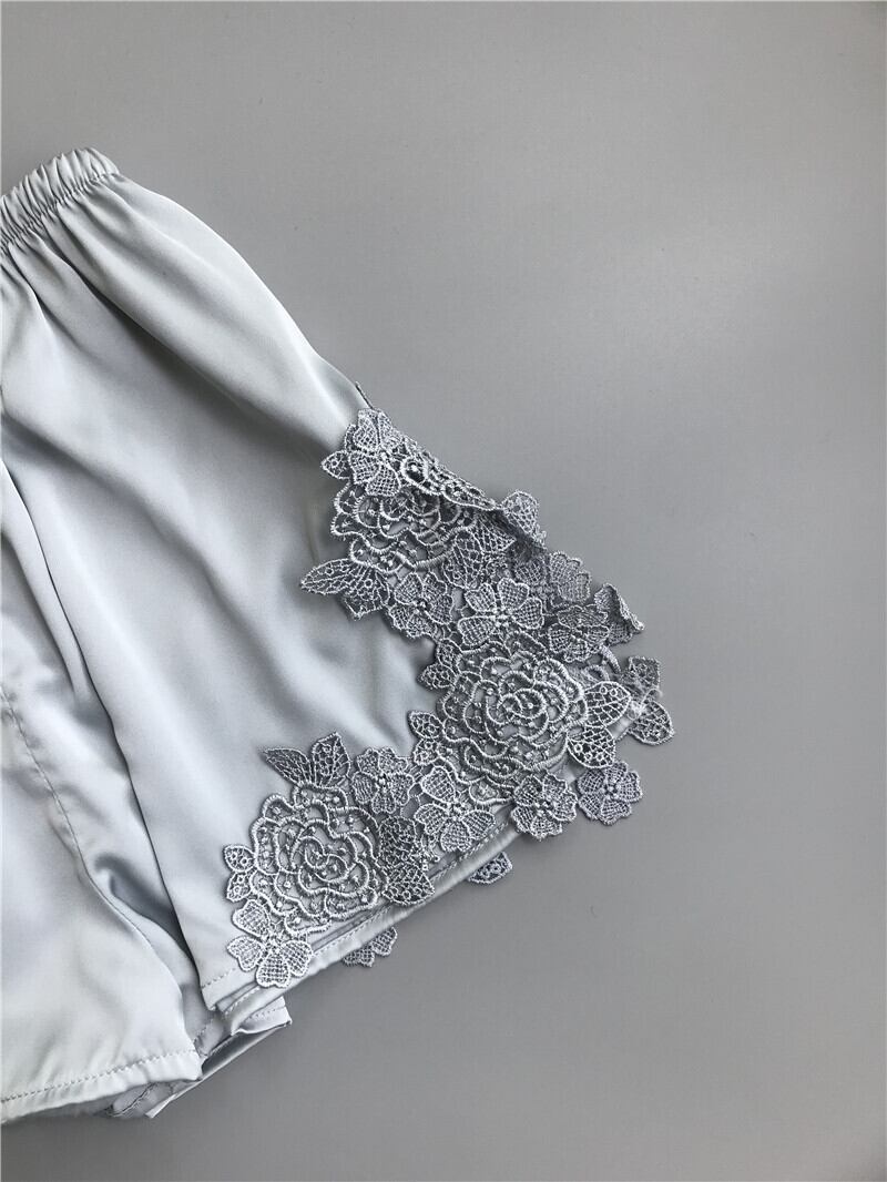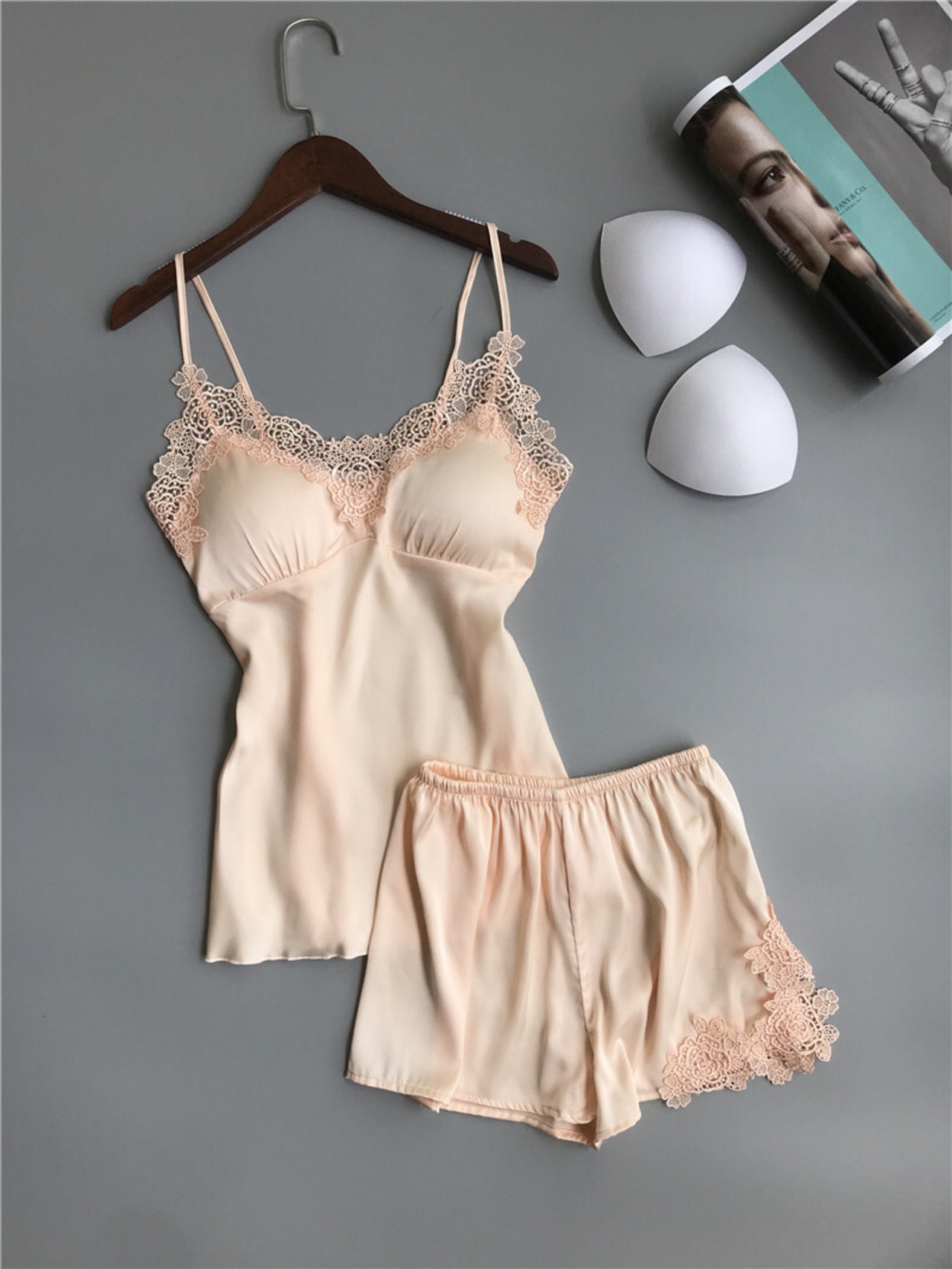 胸パッド付きのセクシーなパジャマ女性の夏のサスペンダーショーツは、ツーピースの韓国の薄い氷のシルクのホームサービススーツの女性を集めました レッド 夏物 韓国ファッション ランジェリー セクシー ルームウェア6288332722 | Plug Shop