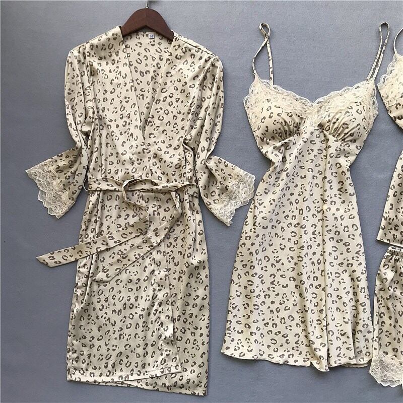 パジャマ女性XiaBingsi3または4ピース長袖小胸ストラップ胸パッドセクシーヒョウ柄ネグリジェホームサービス春と秋薄い ロング スプリング 春物 オータム 秋物 ランジェリー セクシー ルームウェア17592177047 | Plug Shop