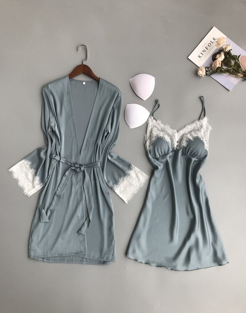 春と秋の製品韓国のパジャマセクシーなレースのパジャマナイトガウン胸パッド付きのツーピースセット非常に魅力的なシルクの家具 スプリング 春物 オータム 秋物 韓国ファッション ランジェリー セクシー ルームウェア77943577873 | Plug Shop