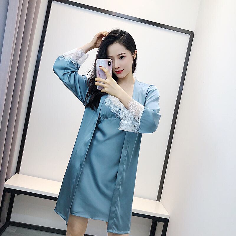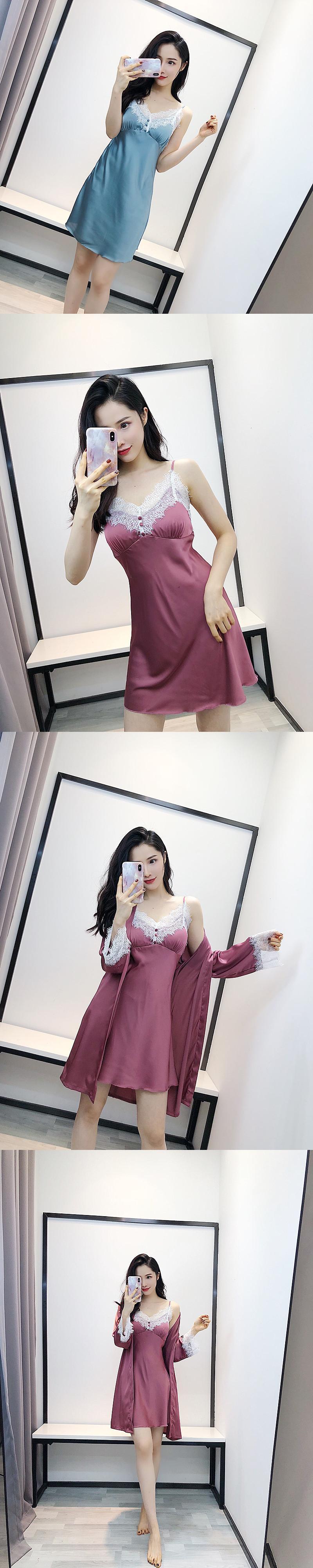 20セクシーなパジャマ女性の春と秋のナイトガウンサスペンダースカートツーピース薄片チェストパッド付きVネックアイスシルクナイトドレスは外に出すことができます スプリング 春物 オータム 秋物 ワンピース ランジェリー セクシー ルームウェア41079597960 | Plug Shop