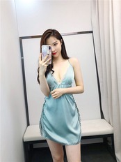 女性のシルクパジャマ春と秋のセクシーなレースのサスペンダー誘惑ネグリジェ夏のホームサービスチェストパッド付き スプリング 春物 夏物 オータム 秋物 ワンピース ランジェリー セクシー ルームウェア35113547781 | Plug Shop