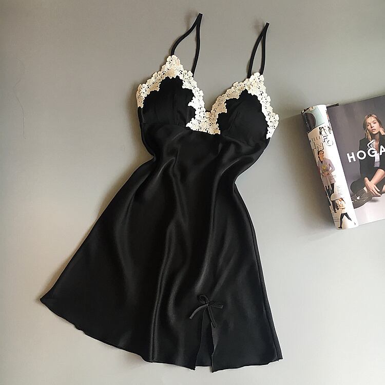 日替わりパジャマ胸パッド付きシルクサスペンダーネグリジェ女性夏シルクセクシーパジャマ女性誘惑ホームサービス 夏物 ワンピース ランジェリー セクシー ルームウェア28442889349 | Plug Shop