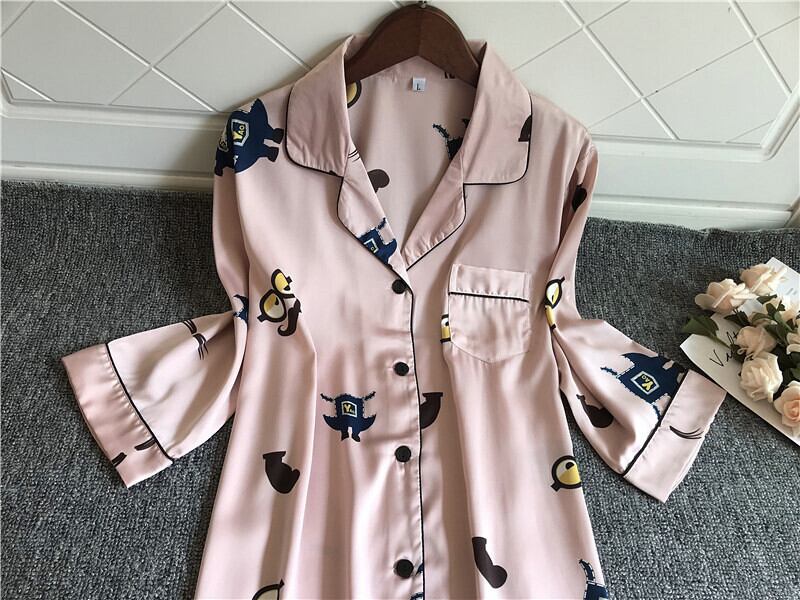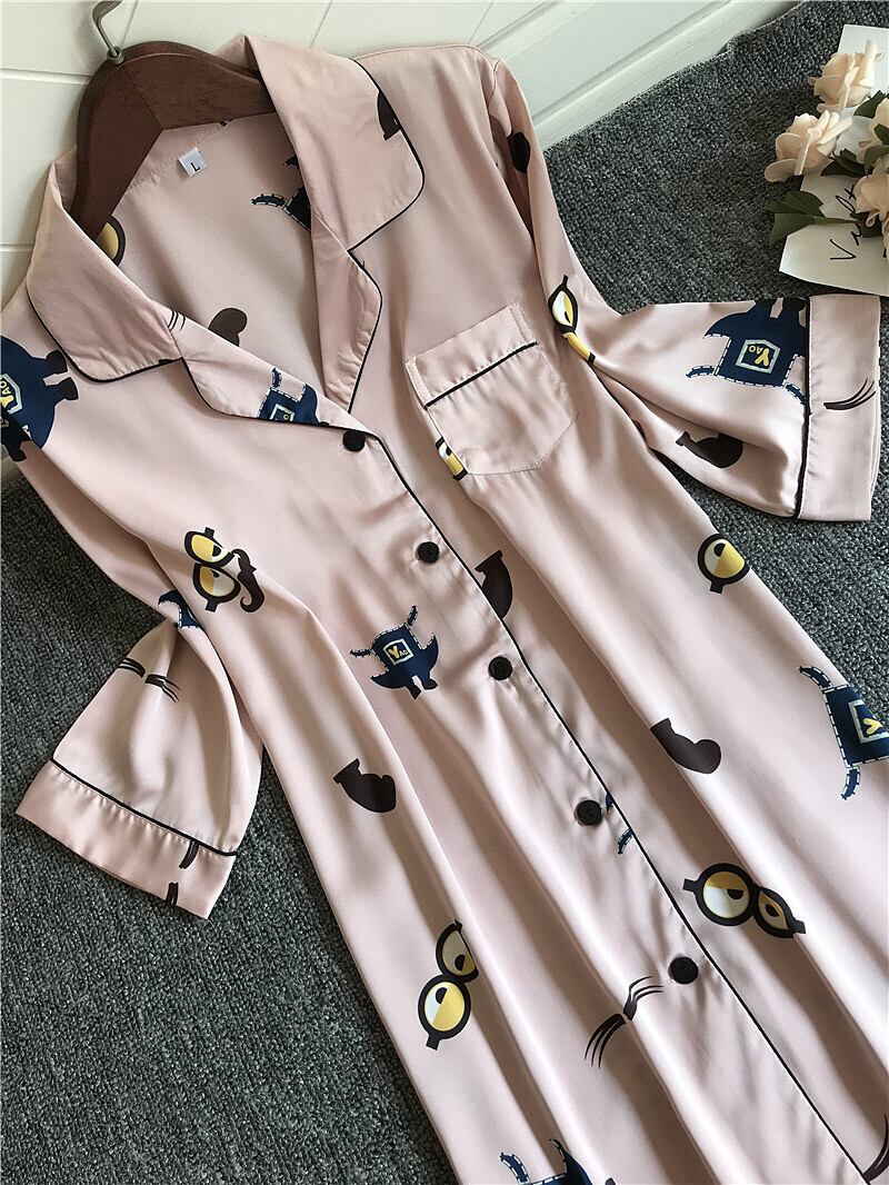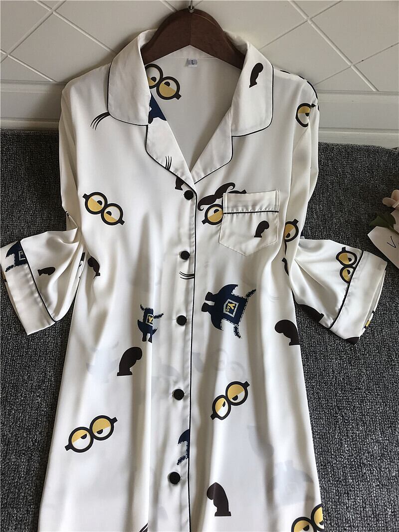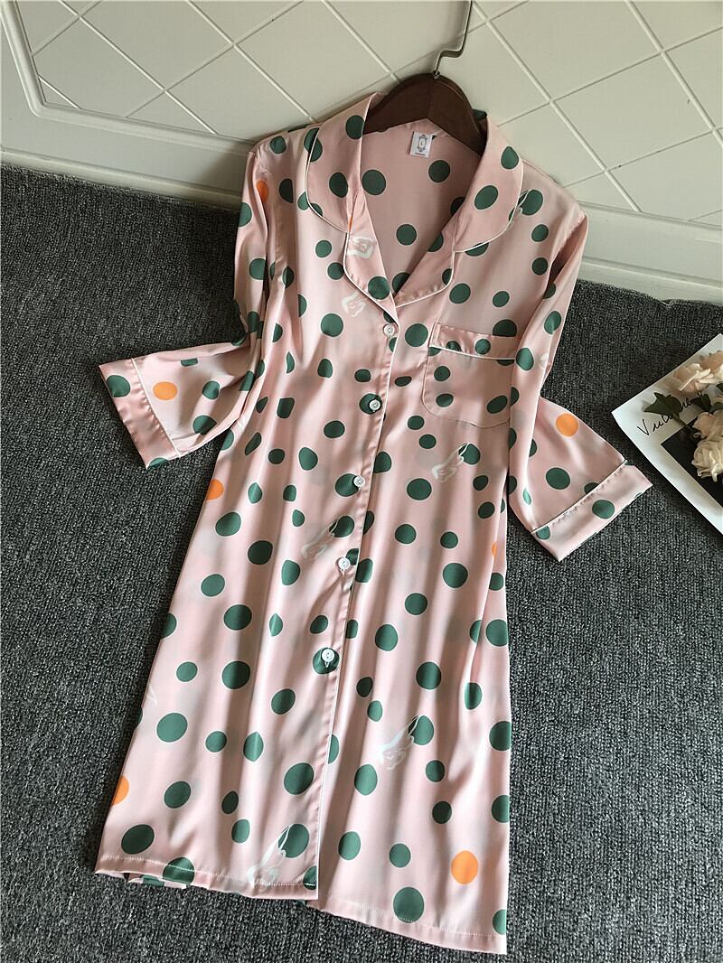 セクシーなシャツの襟のパジャマ女性の夏のアイスシルクミドル丈インかわいいネグリジェカーディガン春と秋は外で着用することができます 大人ガーリー スウィート キュート カジュアル スプリング 春物 夏物 オータム 秋物 ワンピース NEW ランジェリー セクシー ルームウェア59797489254 | Plug Shop