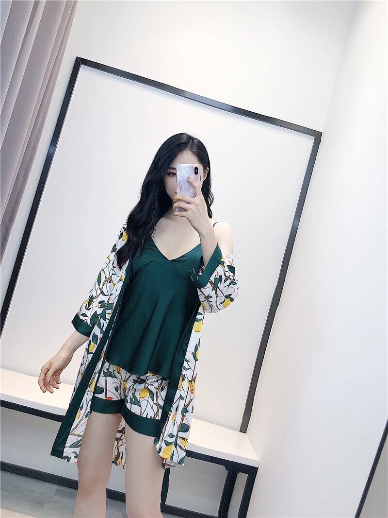 20人のパジャマ女性の春と夏のセクシーなオープンバックアイスシルクプリントショーツパジャマナイトガウンスリーピースホームサービスは屋外で着用できます スプリング 春物 夏物 ランジェリー セクシー ルームウェア94275524463 | Plug Shop