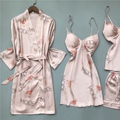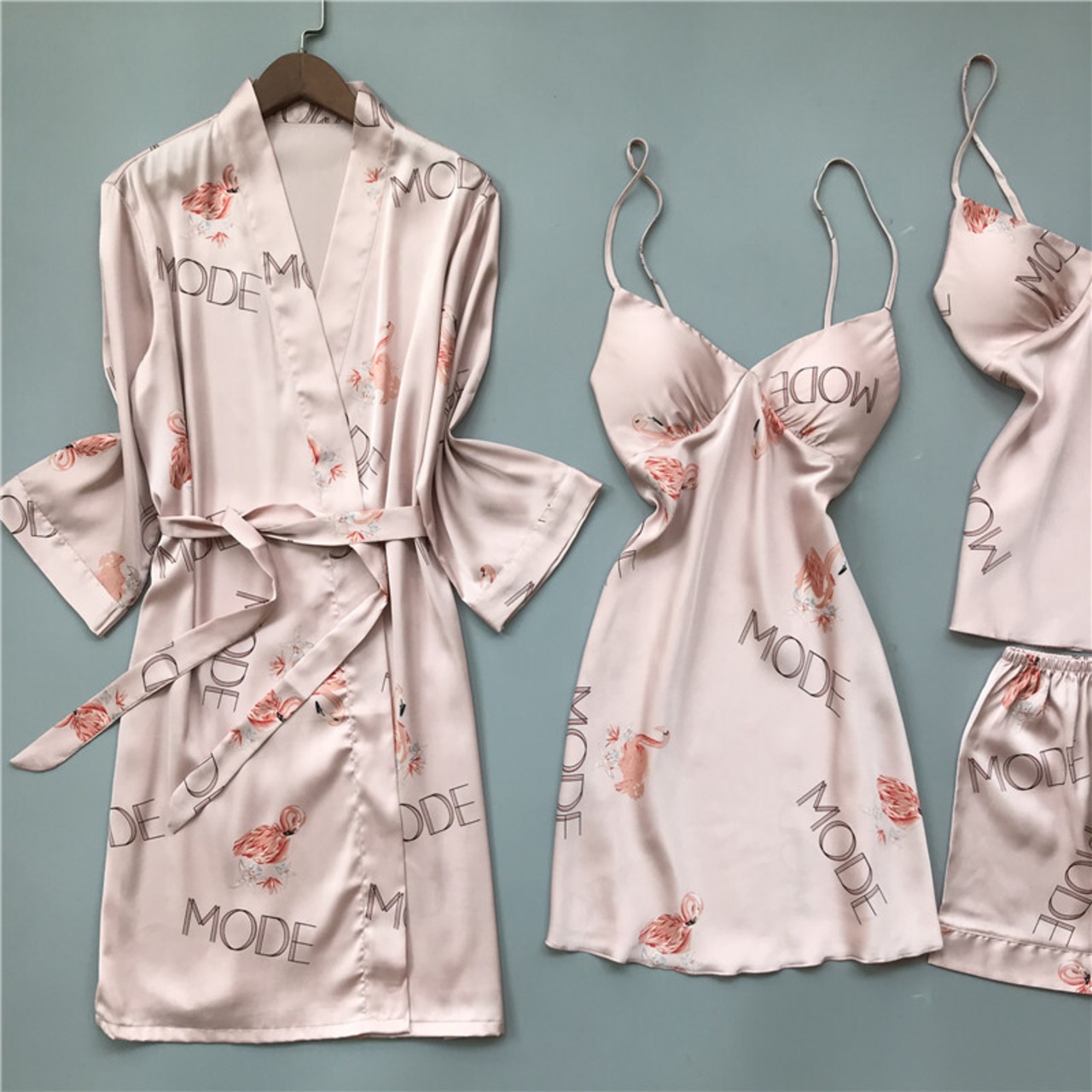 パジャマ女性夏4ピーススーツアイスシルクセクシースリングネグリジェナイトガウンシルクツーピース薄片胸パッド付き 夏物 ワンピース ランジェリー セクシー ルームウェア71945232394 | Plug Shop