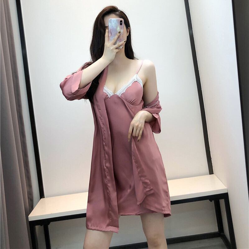 小さな胸のパジャマ女性の夏のセクシーなスリングチェストパッド春と秋のアイスシルクネグリジェナイトガウンツーピースセットは家の外で薄く着用することができます スプリング 春物 夏物 オータム 秋物 ワンピース ランジェリー セクシー ルームウェア38461827168 | Plug Shop