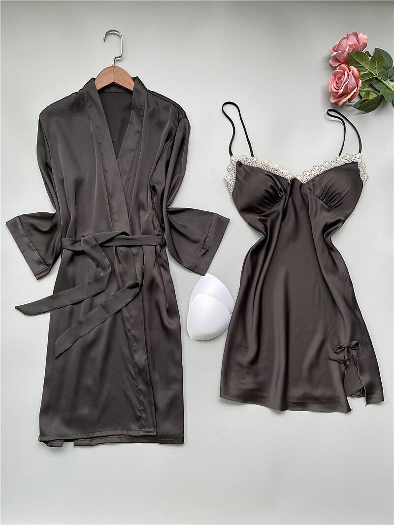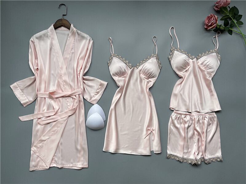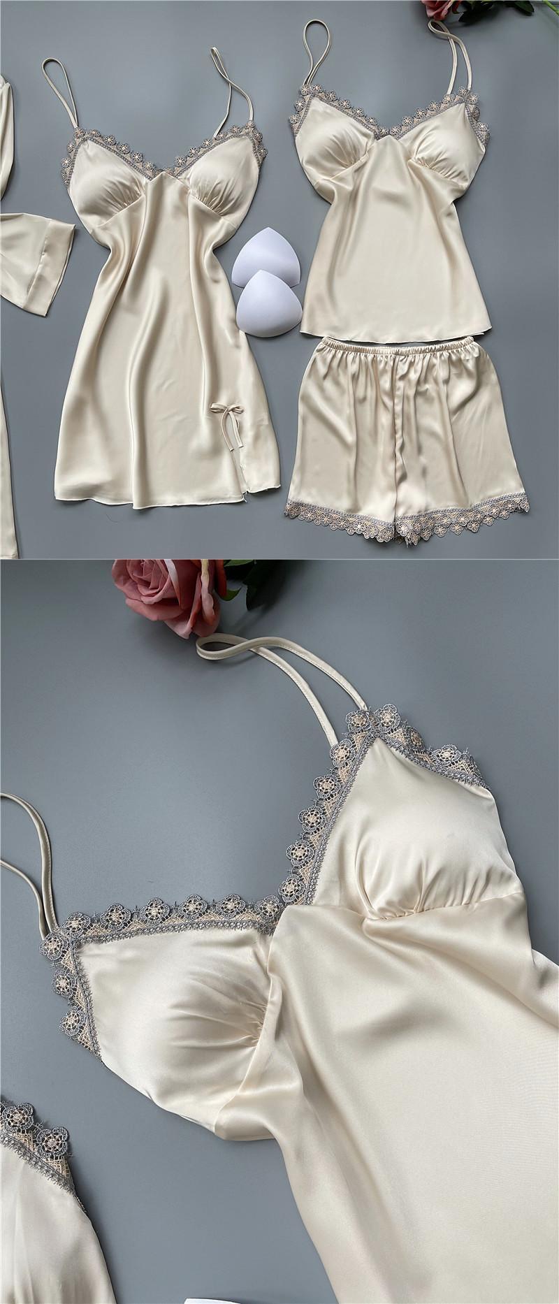 シミュレーションシルクパジャマ女性春と秋の薄いスリングチェストパッドナイトドレスセクシーなショーツナイトガウン4ピーススーツホームウェア スプリング 春物 オータム 秋物 ワンピース ランジェリー セクシー ルームウェア59742693151 | Plug Shop