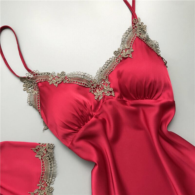 長袖のスリーピングバスローブ、ホームサービス、サスペンダーナイトドレス、女性らしさと誘惑、春と秋にチェストパッド付きのシルクパジャマ ロング スプリング 春物 オータム 秋物 ワンピース ランジェリー セクシー ルームウェア53821786538 | Plug Shop