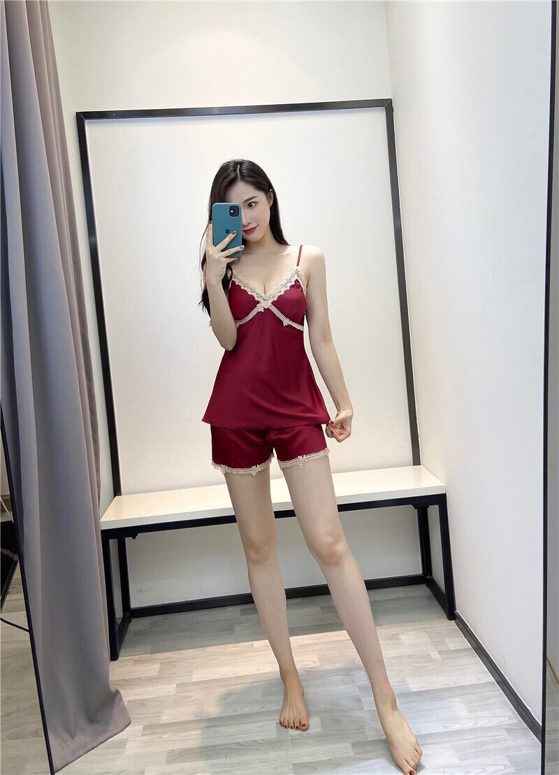春夏新作スリングチェストパッドパジャマ女性アイスシルクセクシースモールチェストギャザーベストショーツスーツホームラージサイズ レッド 大きめサイズ スプリング 春物 夏物 ランジェリー セクシー ルームウェア41586602752 | Plug Shop
