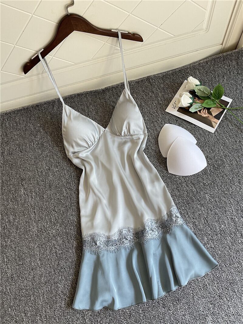 春の新しいパジャマ女性の夏のセクシーなレースステッチプライベートスリングナイトドレス小さな胸ベルト胸パッドホームサービス薄片 スプリング 春物 夏物 ハーネス ワンピース ランジェリー セクシー ルームウェア86945692836 | Plug Shop