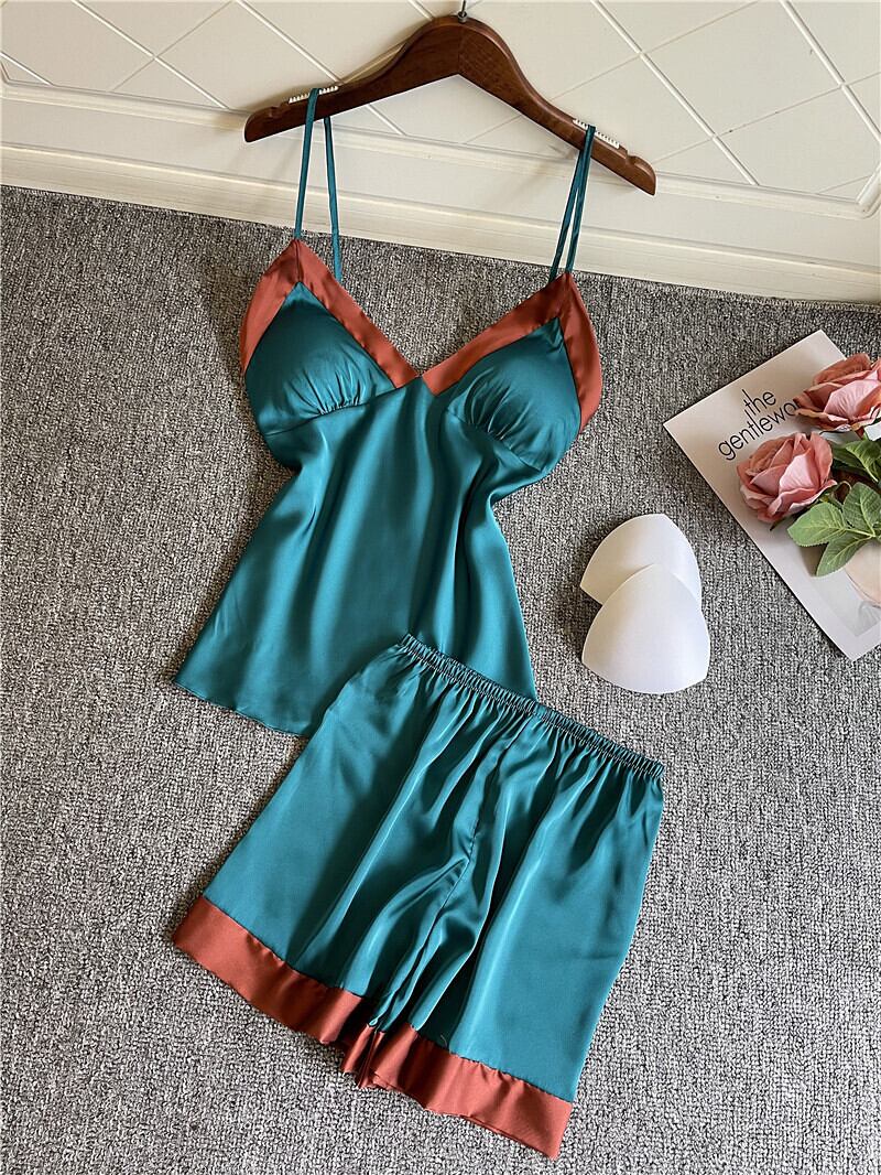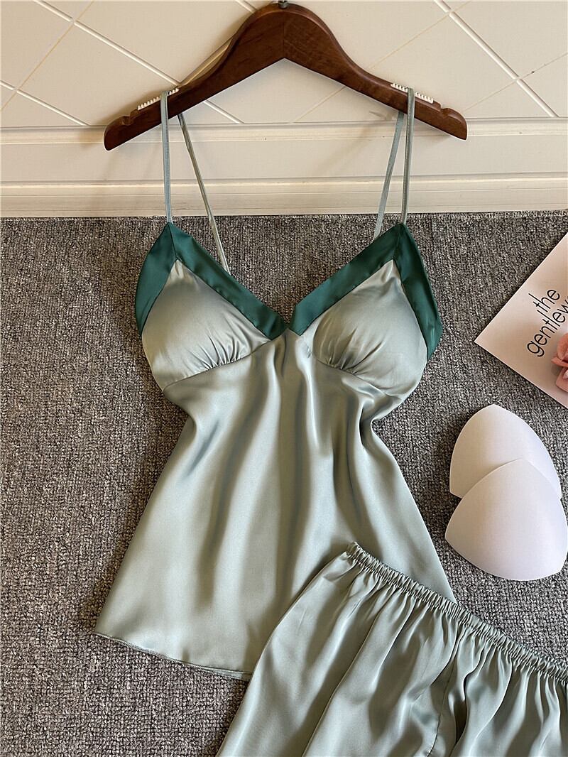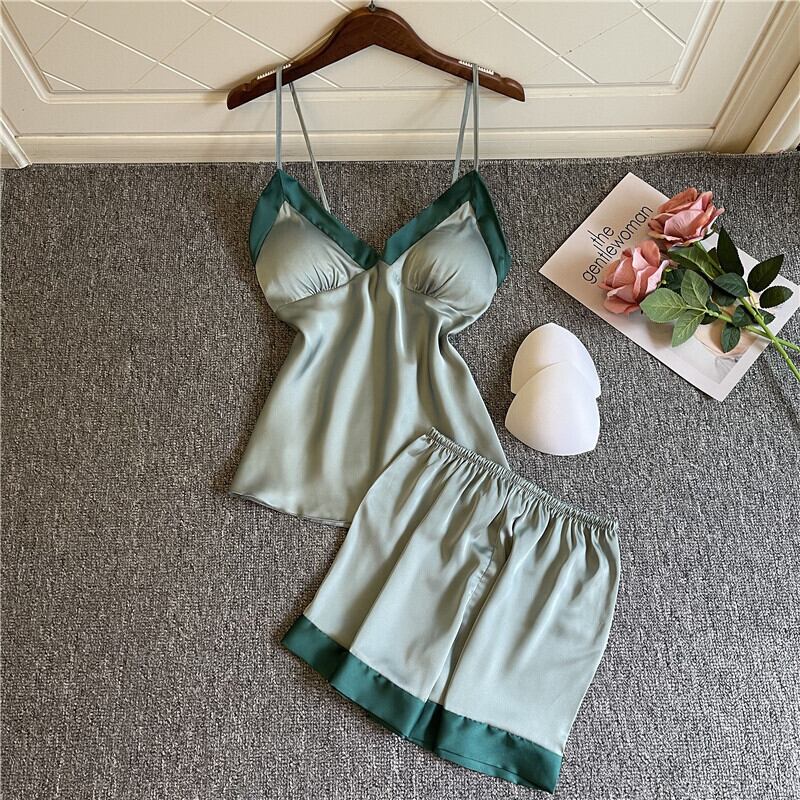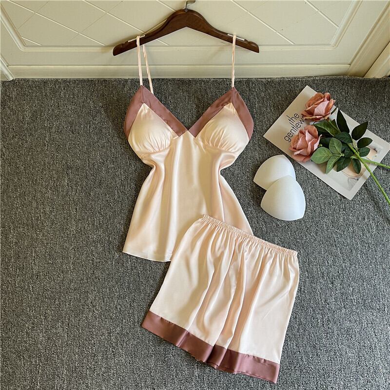 夏のセクシーなキャミソールアイスシルクパジャマスーツレディーススモールフレッシュショーツホームサービスツーピーススーツ胸パッド薄 夏物 ランジェリー セクシー ルームウェア64207287051 | Plug Shop