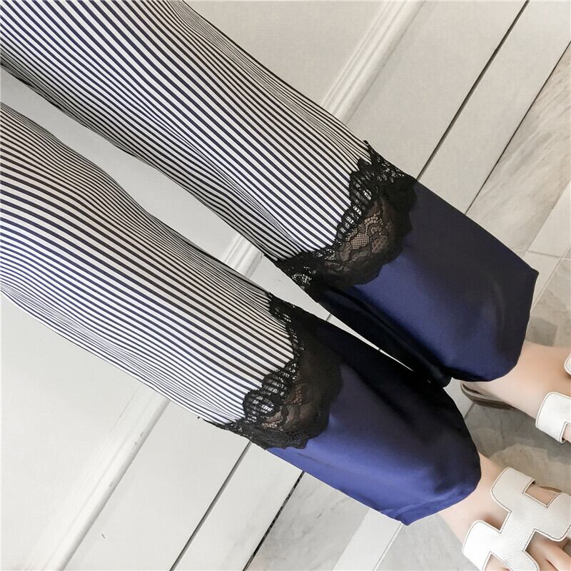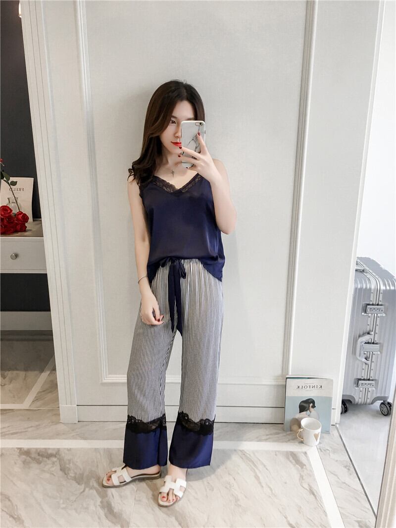 パジャマフェミニンステッチレーストリムストライプパンツ調節可能なキャミソール快適なホームサービスツーピーススーツ アジャスタブル ランジェリー セクシー ルームウェア49642974487 | Plug Shop