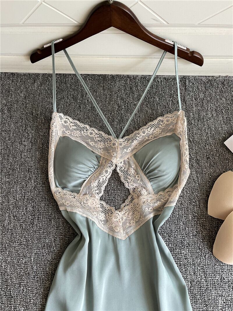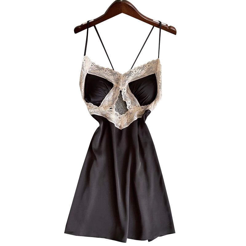 レース美しい背中セクシーなパジャマ女性春と夏のアイスシルク中空スリング胸パッドナイトドレスいちゃつく誘惑ショートスカート薄片 スプリング 春物 夏物 ワンピース ランジェリー セクシー ルームウェア19885068031 | Plug Shop