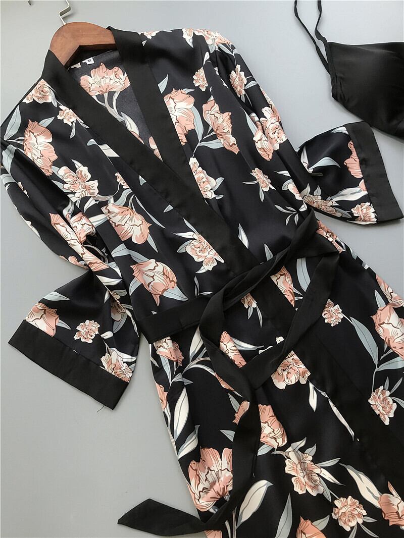 爆発的な女性の春、秋、冬のアイスシルクのセクシーなパジャマ、薄いスリング、チェストパッド、ナイトドレス、ネグリジェ、ツーピースの長袖 ロング スプリング 春物 オータム 秋物 ウィンター 冬物 ワンピース ランジェリー セクシー ルームウェア62068379241 | Plug Shop