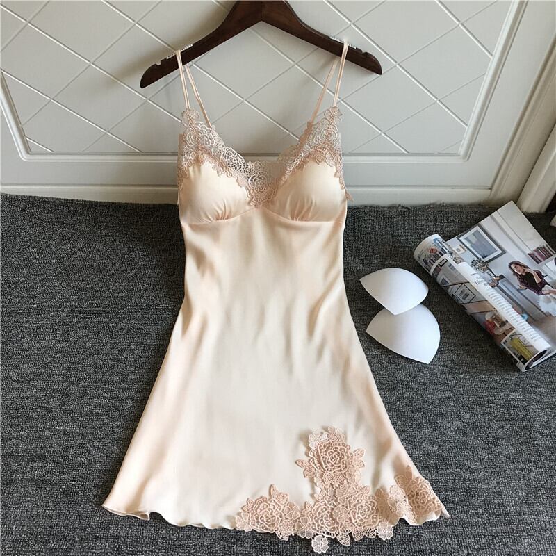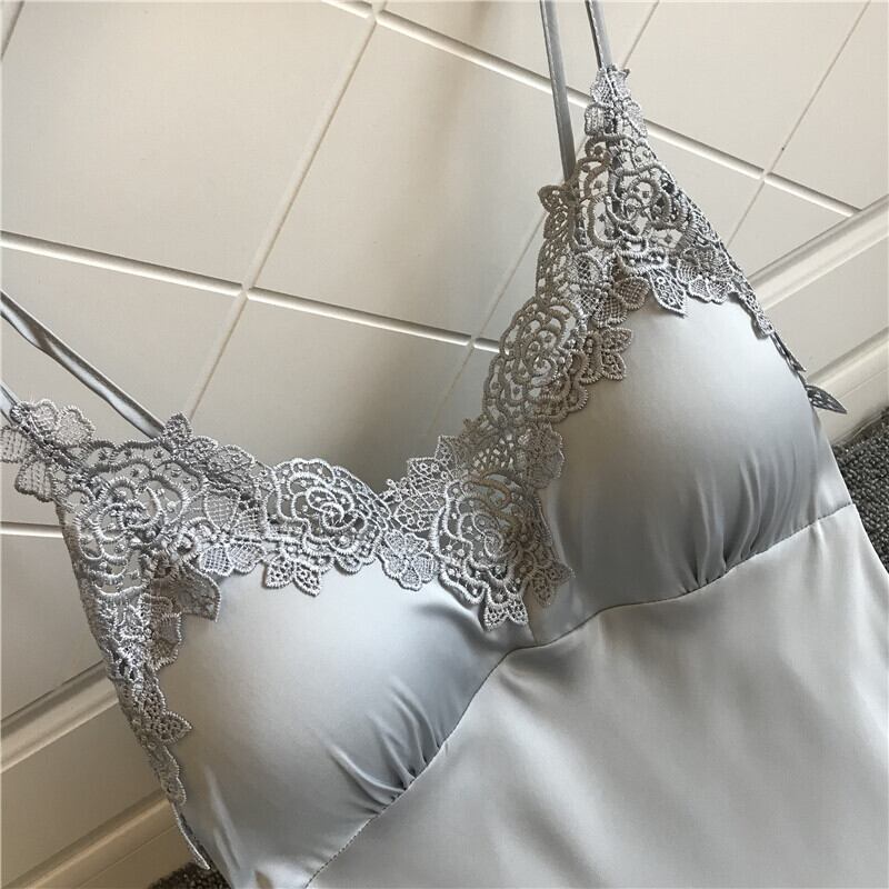 アイスシルクパジャマ女性サマーサスペンダー胸パッド付きセクシーナイトドレスギャザーパジャマシルクパジャマ刺繍レース誘惑 レッド 夏物 ワンピース ランジェリー セクシー ルームウェア72911827270 | Plug Shop