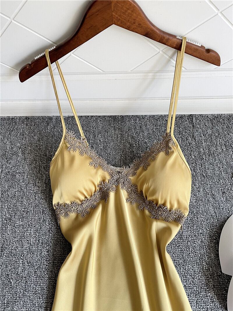 スリングパジャマレディースレース胸パッドボトミングスカート春夏アイスシルク韓国セクシー誘惑ホルターパジャマ スプリング 春物 夏物 韓国ファッション ランジェリー セクシー ルームウェア65973235463 | Plug Shop