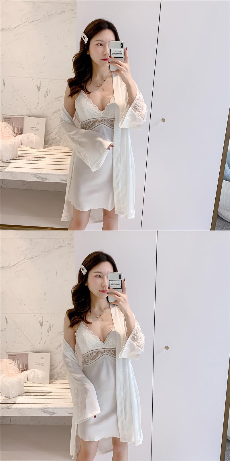 春秋アイスシルク薄着パジャマレディースサマーチェストパッドホローレーススリングネグリジェナイトガウン長袖ツーピースセット ロング スプリング 春物 夏物 オータム 秋物 ワンピース ランジェリー セクシー ルームウェア26958739850 | Plug Shop