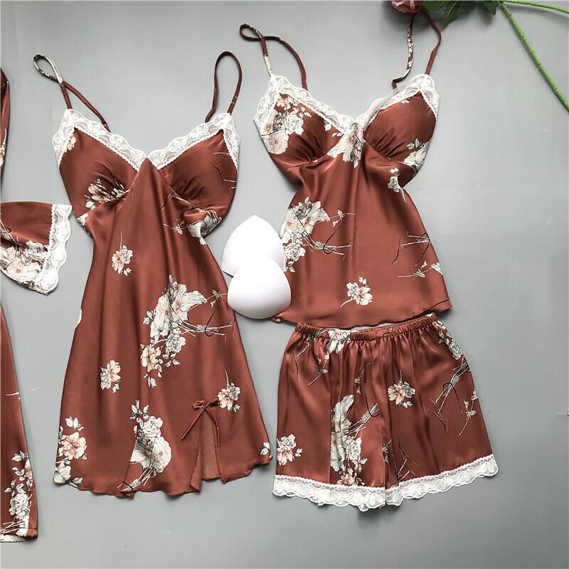 パジャマ女性の春と夏のセクシーな4ピースナイトドレスアイスシルクスリングチェストパッドナイトガウン春と秋のホームサービスショーツスーツ スプリング 春物 夏物 オータム 秋物 ワンピース ランジェリー セクシー ルームウェア76874199118 | Plug Shop