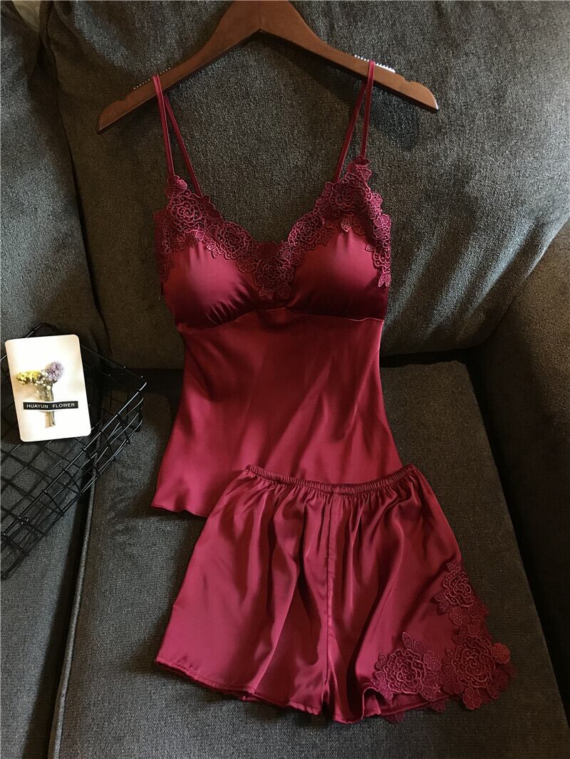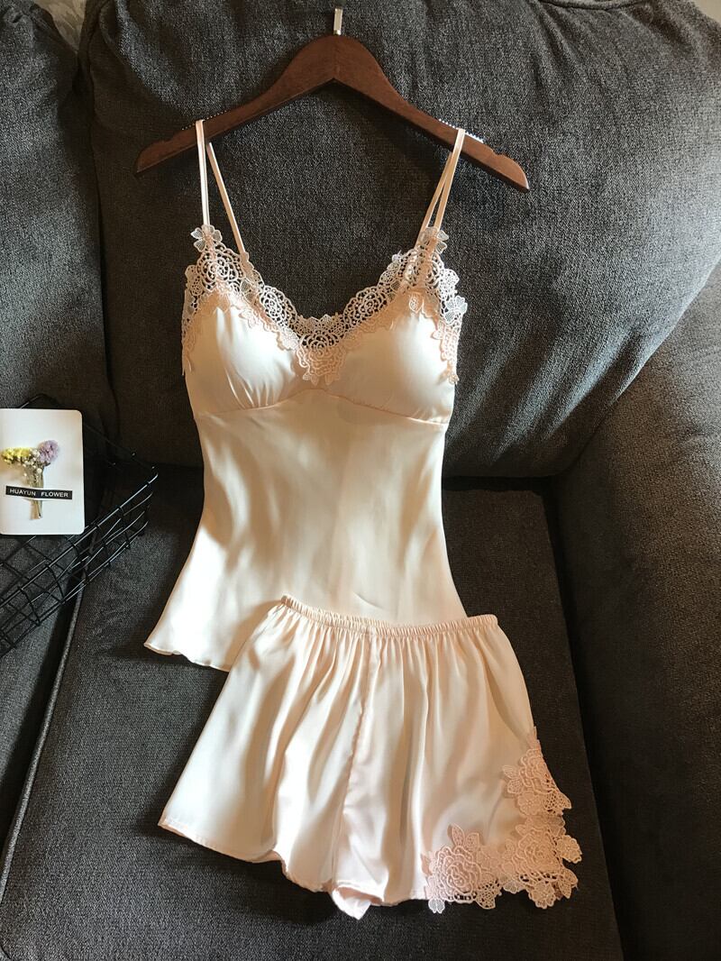 2020年の新しい韓国スタイルのパジャマ女性の夏のセクシーなサスペンダーショーツアイスシルクツーピーススーツチェストパッドレディースホームサービス 夏物 韓国ファッション ランジェリー セクシー ルームウェア1047537910 | Plug Shop