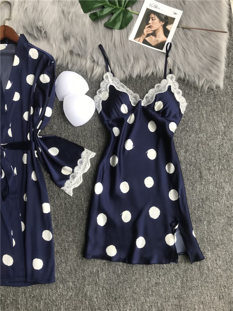 セクシーなパジャマ女性の夏のアイスシルクの薄いレースのサスペンダー胸パッドが集まった水玉のネグリジェは2セットで外に着用することができます レッド 夏物 ワンピース ランジェリー セクシー ルームウェア59358540257 | Plug Shop