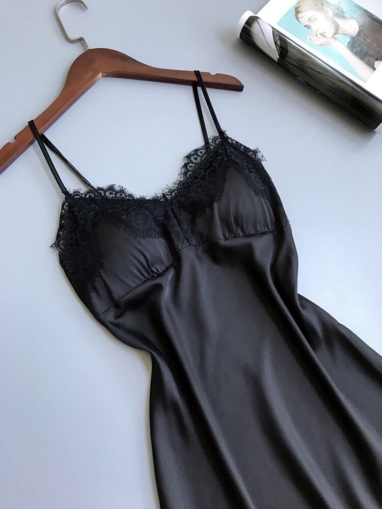 パジャマ女性夏の極端な誘惑セクシーなVネックレースサイドサスペンダーナイトドレス胸パッドシルクホームサービスシルク 夏物 ワンピース ランジェリー セクシー ルームウェア92106773770 | Plug Shop