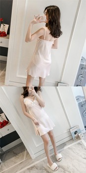 セクシーなパジャマ女性の夏のセクシーなランジェリー、胸パッドショートスカート大人の背中の開いたシルクサスペンダーナイトドレスプラスサイズ 大きめサイズ 夏物 ワンピース ランジェリー セクシー ルームウェア63824101208 | Plug Shop