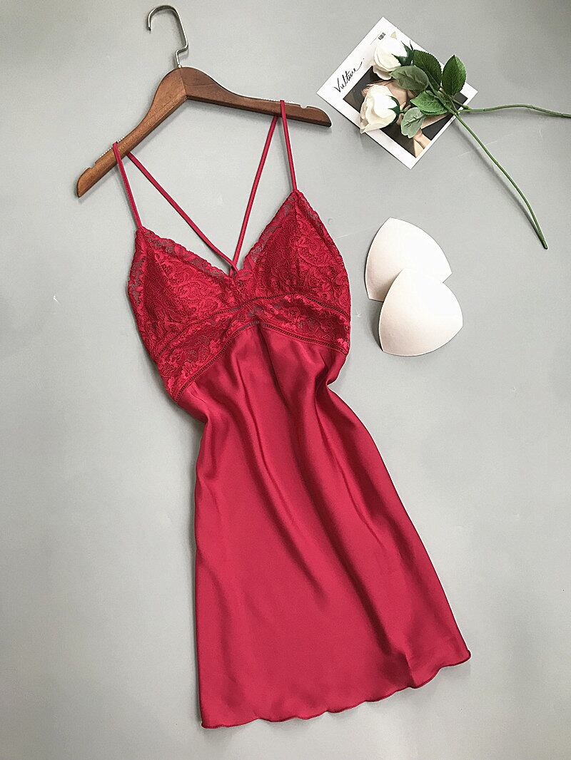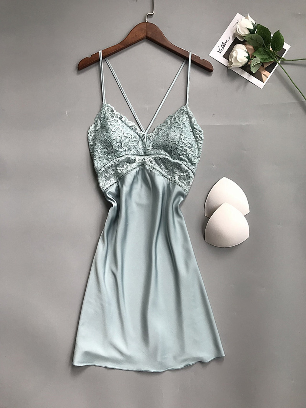 韓国版レースセクシースリングチェストパッドホルターナイトドレス女性夏の誘惑本物のシルク美しいバックホームサービスショートスカート 夏物 韓国ファッション スタイル ワンピース ランジェリー セクシー ルームウェア23050857463 | Plug Shop