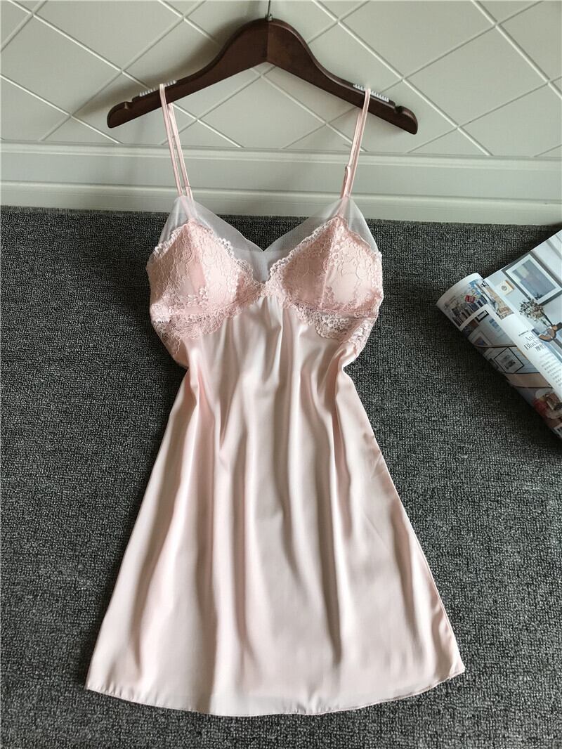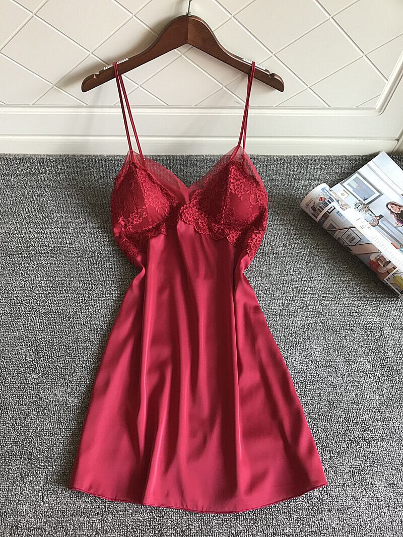胸パッド付き春夏セクシースリングネグリジェアイスシルク女性ディープVホルターシミュレーションシルクパジャマレースホームサービス スプリング 春物 夏物 ワンピース ランジェリー セクシー ルームウェア11243839110 | Plug Shop