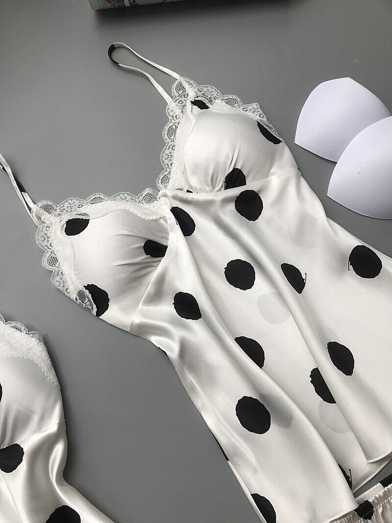 白いパジャマ4ピースの女性の春と秋のセクシーなスーツ、胸パッドサスペンダーナイトドレスアイスシルク夏の薄いナイトガウン ホワイト スプリング 春物 夏物 オータム 秋物 ワンピース ランジェリー セクシー ルームウェア58430073761 | Plug Shop