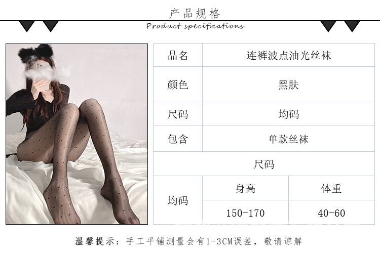 色:ブラックオイリーポルカドットパンスト,肌色オイリー水玉タイツ