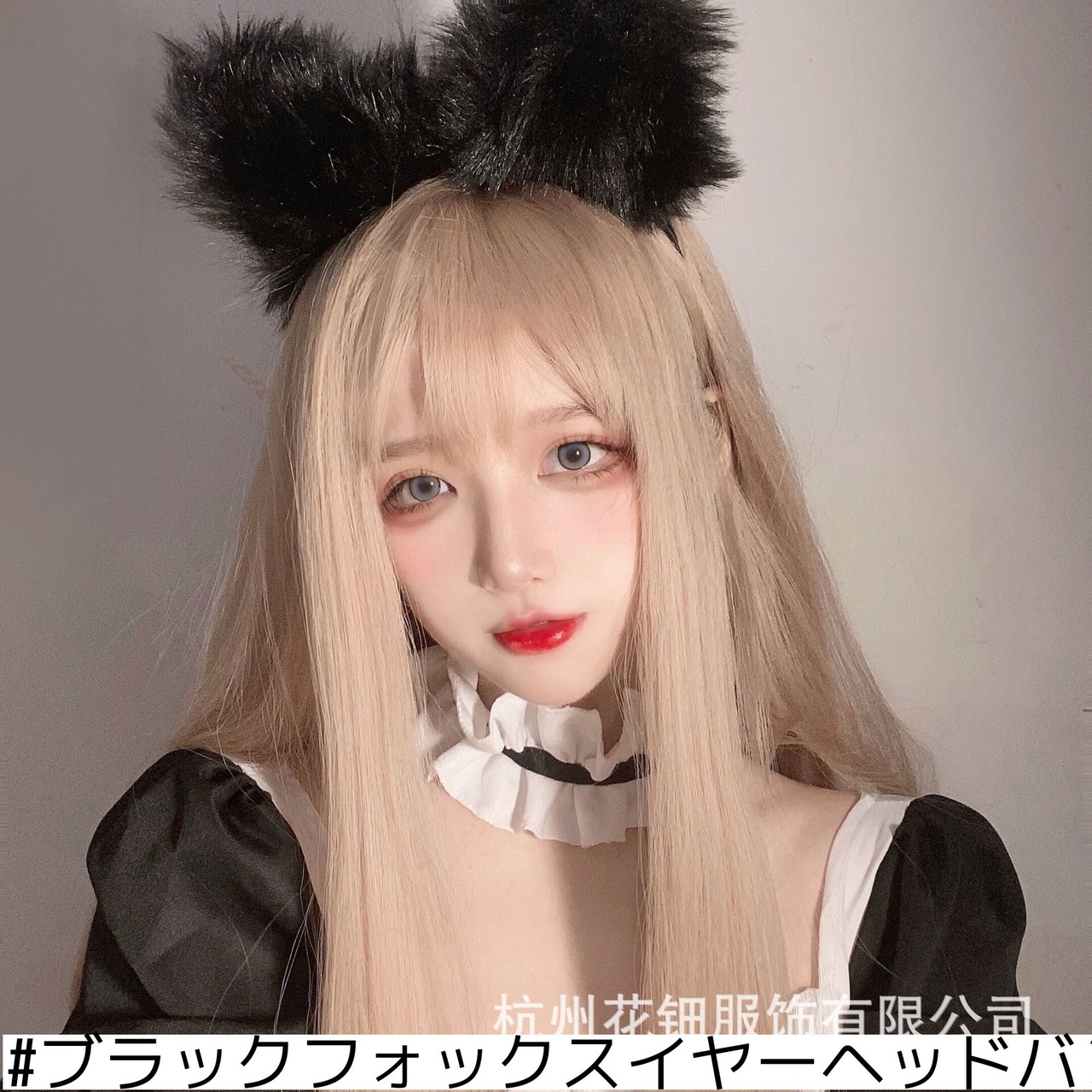 色:シングルメイドスーツ,ホワイトフォックスイヤーヘッドバンド,ブラックフォックスイヤーヘッドバンド,黒のネクタイストッキング