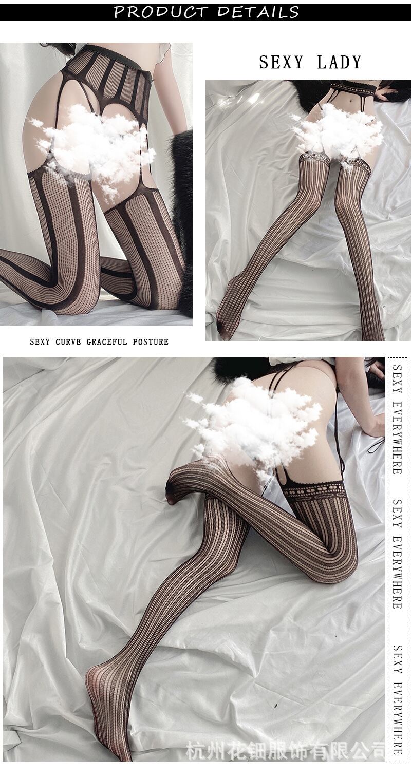 色:黒のピンストライプサスペンダーストッキング,ブラックワイドストライプサスペンダーストッキング