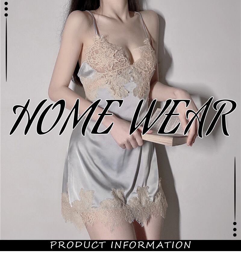 パジャマ ルームウェアホルターレースワンピーススプリング秋物 大人ガーリー スウィート キュート カジュアル 春物 オータム シルク セクシー A かわいい_A14683189549 | Plug Shop